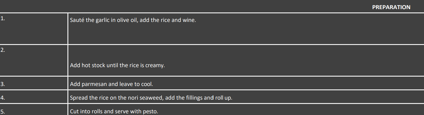 - Italy - by using risotto, a creamy rice typical of Italian cuisine, to replace traditional Japanese rice.