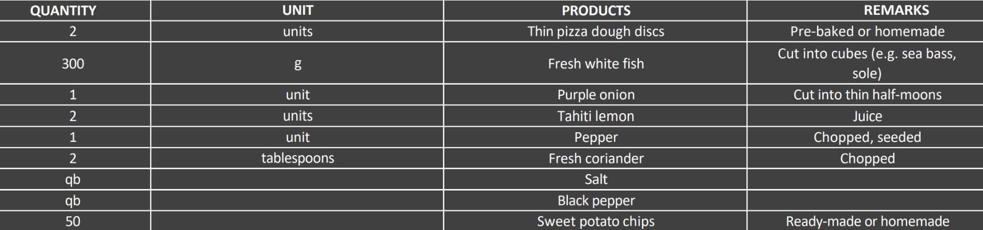 - Peru - for the ceviche, prepared with white fish marinated in lemon, red onion, pepper and coriander.