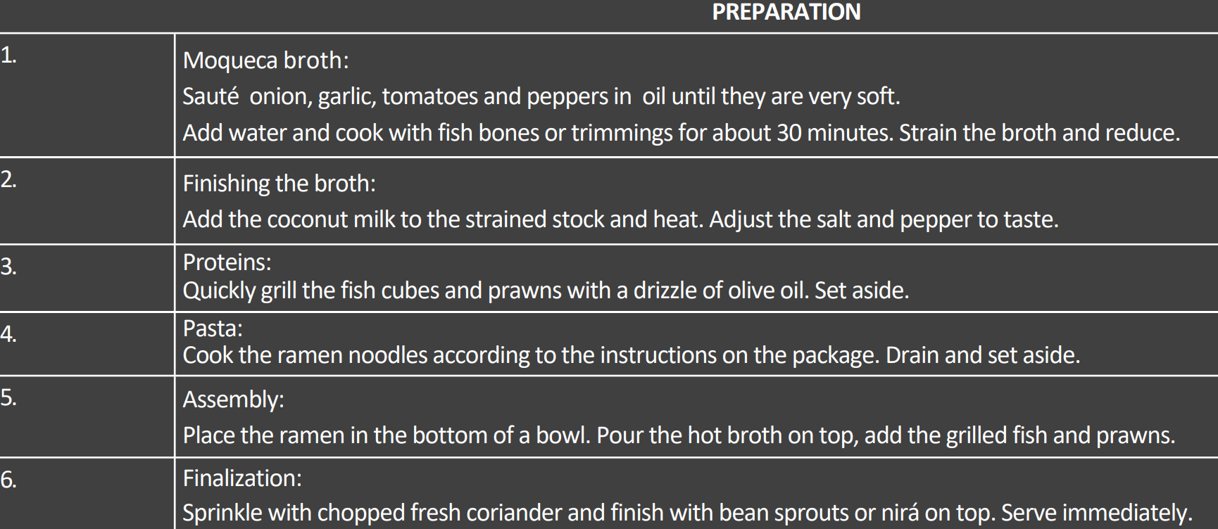 - The dish Ramen de Moqueca with Coconut Milk and Coriander represents a fusion between: